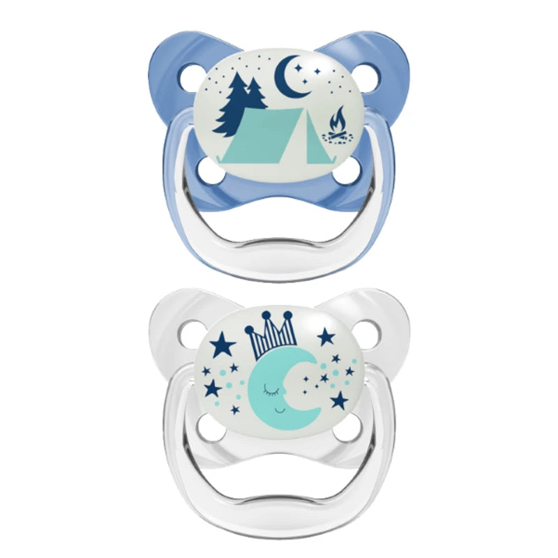 Dr Brown's Ορθοδοντικές Πιπίλες Σιλικόνης για 6-18 μηνών Νυκτός Φεγγαράκι Διάφανο / Μπλε 2τμχ