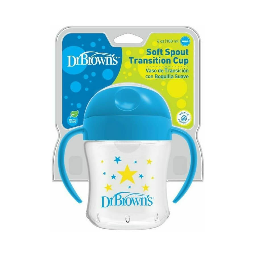 Dr Brown's Κύπελλο με Καπάκι & Λαβές Μπλε 180ml, 6m+