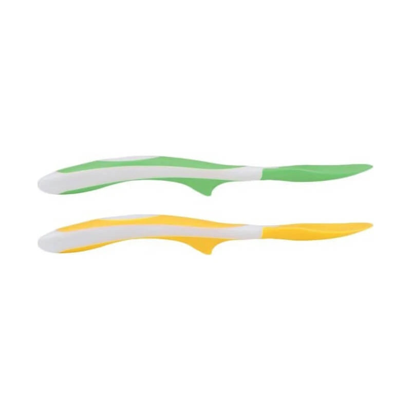Ο μοναδικός σχεδιασμός με ανυψωμένο πίσω μέρος διατηρεί το κουταλάκι μακριά από τις επιφάνειες, προσφέροντας επιπλέον υγιεινή κατά τη χρήση. Κατασκευάζονται από πολυπροπυλένιο και σιλικόνη, χωρίς BPA, και διατίθενται σε χαρούμενα χρώματα (κίτρινο & πράσινο) που τραβούν την προσοχή του παιδιού.