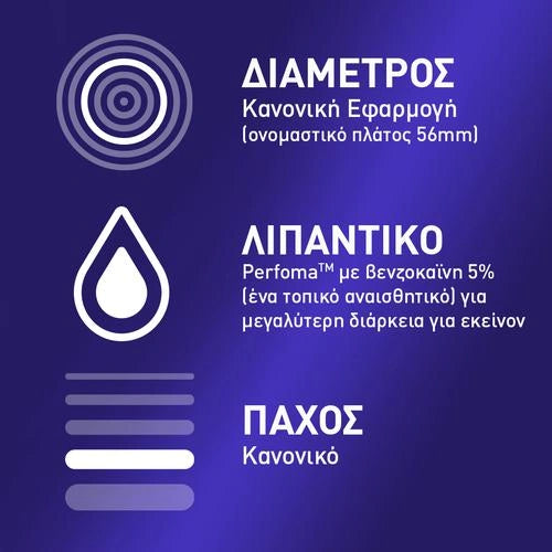 Εμποτισμένα με λιπαντικό Performa™ για καθυστέρηση της κορύφωσης