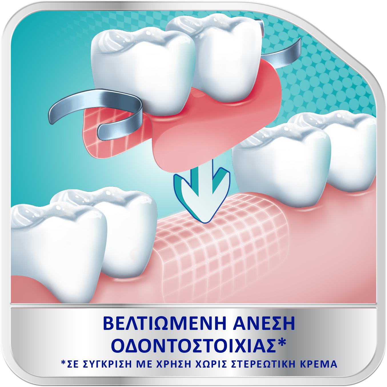 Μειώνει την είσοδο τροφών ανάμεσα στην οδοντοστοιχία και τα ούλα.