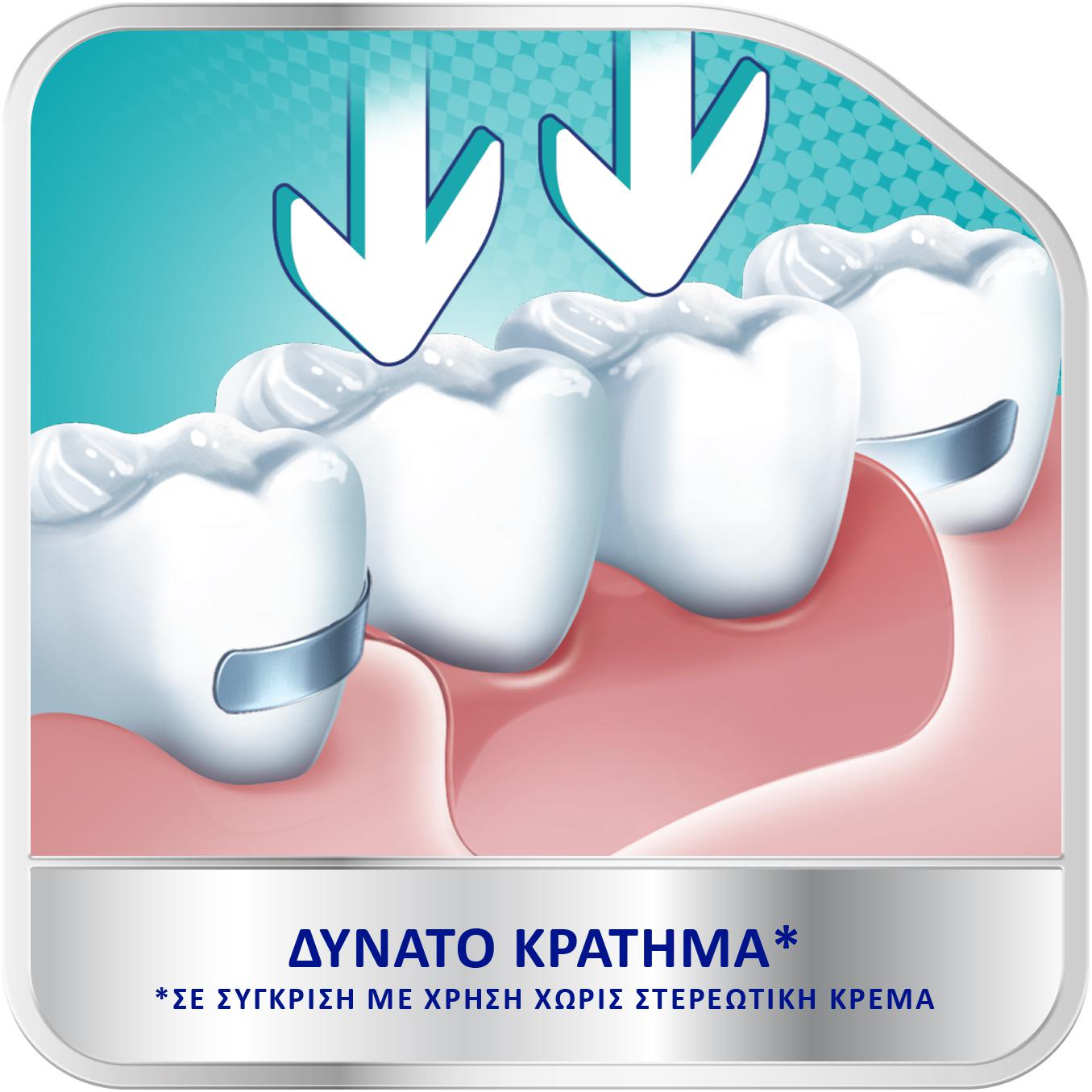 Τοποθετήστε την οδοντοστοιχία, κρατήστε σταθερά και δαγκώστε για λίγα δευτερόλεπτα.