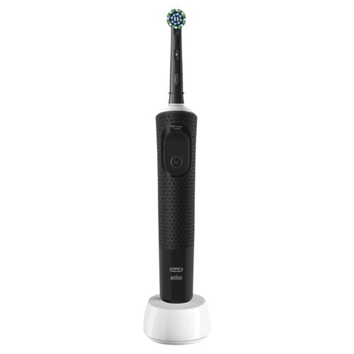 Η Oral-B Vitality Pro Black είναι μια επαναφορτιζόμενη ηλεκτρική οδοντόβουρτσα που προσφέρει ανώτερο καθαρισμό σε σχέση με μια απλή χειροκίνητη οδοντόβουρτσα. Χάρη στην προηγμένη τεχνολογία της Oral-B, αφαιρεί απαλά έως και 100% περισσότερη βακτηριακή πλάκα, προσφέροντας πιο υγιή δόντια και ούλα.