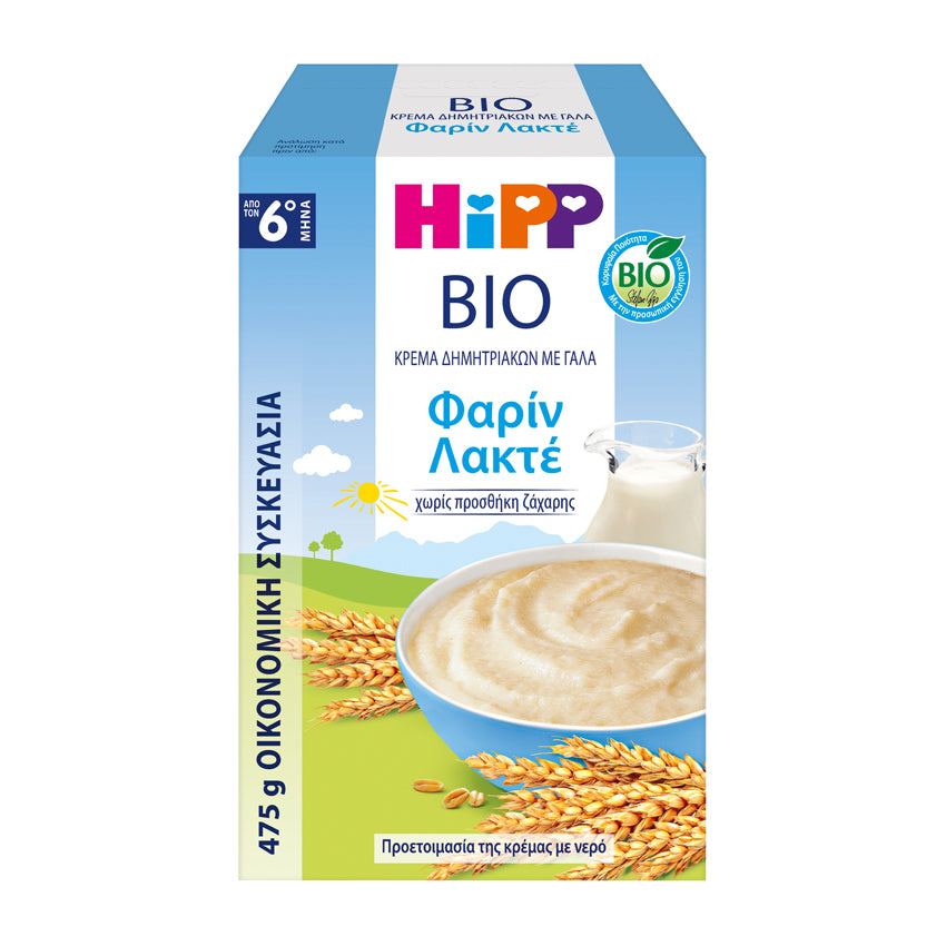 Η HiPP Bio Κρέμα Δημητριακών με Γάλα (Φαρίν Λακτέ) είναι ειδικά σχεδιασμένη για την ασφαλή και ισορροπημένη διατροφή του μωρού σας, από τον 6ο μήνα ζωής.