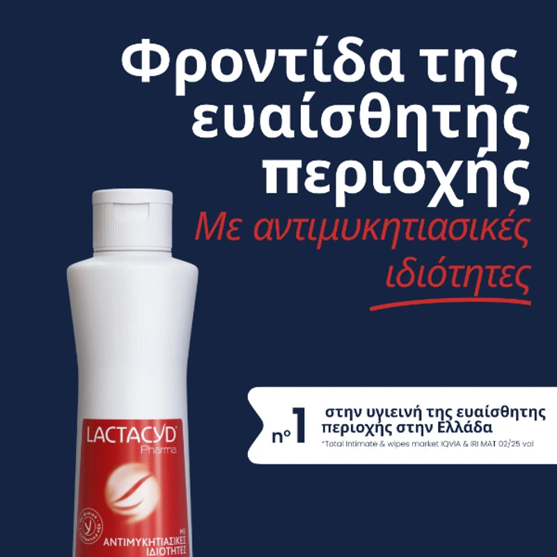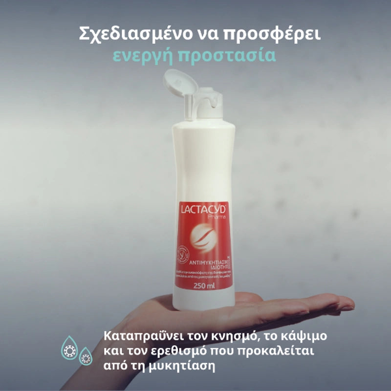 Το Lactacyd Pharma Antifungal είναι λοσιόν καθαρισμού ειδικά σχεδιασμένη για την καθημερινή φροντίδα της ευαίσθητης περιοχής, με αντιμυκητιασικές ιδιότητες. Βοηθά στην ανακούφιση από δυσφορία, κνησμό, αίσθηση καύσου και ερεθισμό που μπορεί να σχετίζονται με αιδοιοκολπική μυκητίαση.