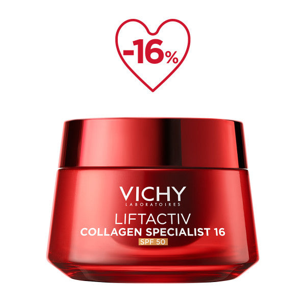 Η Vichy Liftactiv Collagen Specialist 16 SPF50 συνδυάζει ισχυρή αντιγηραντική δράση με υψηλή αντηλιακή προστασία, αποτελώντας την ιδανική καθημερινή κρέμα για πιο σφριγηλή, λεία και φωτεινή επιδερμίδα με μακροχρόνια προστασία από τη φωτογήρανση.