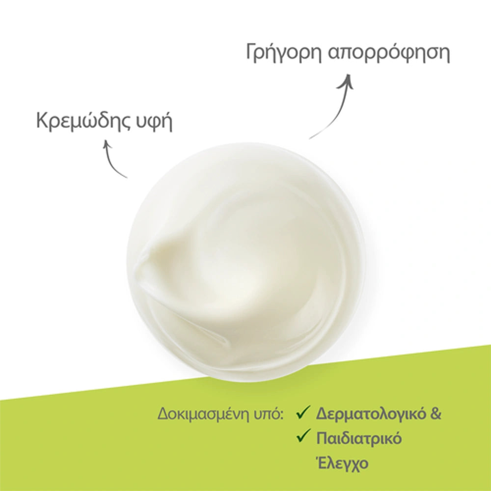 Πλούσια, μη λιπαρή και μη κολλώδης, θρέφει σε βάθος, καταπραΰνει τους ερεθισμούς και προστατεύει το δέρμα με μία μόνο εφαρμογή την ημέρα.