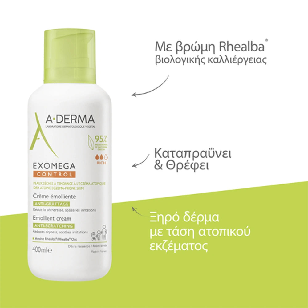 💚 A-Derma Exomega Control Μαλακτική Κρέμα – Φυσική, αποτελεσματική και απαλή φροντίδα για το ξηρό και ατοπικό δέρμα.