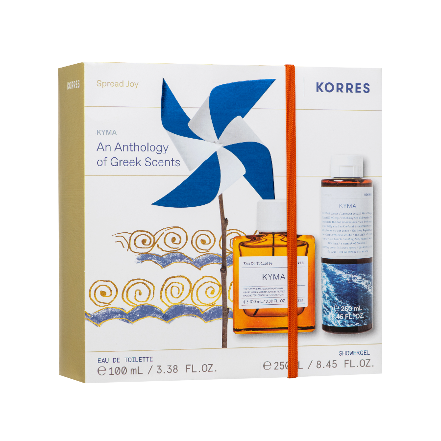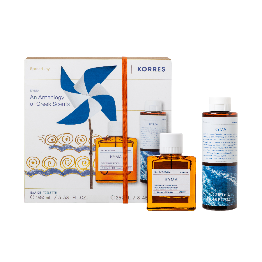 Το Kyma Eau De Toilette αποπνέει καθαρότητα και φρεσκάδα, ενώ το Αφρόλουτρο Kyma καθαρίζει απαλά το δέρμα, αφήνοντας το άρωμα να διαρκεί για ώρες.