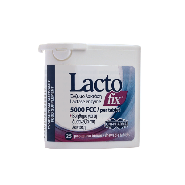 Το Lacto Fix της Uni-Pharma είναι ένα συμπλήρωμα διατροφής με ένζυμο λακτάσης, ειδικά σχεδιασμένο για άτομα που αντιμετωπίζουν δυσανεξία στη λακτόζη.